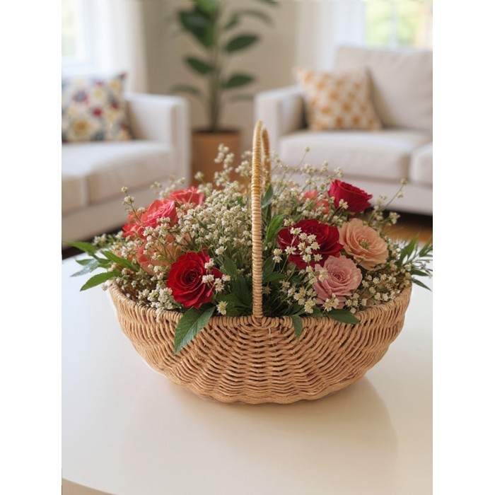 Корзина плетеная с ручками Ракушка (Пакет+Бант; 29, 5*23, 5*12, 5 /29 руч ) иск/ротанг, песочный 265841