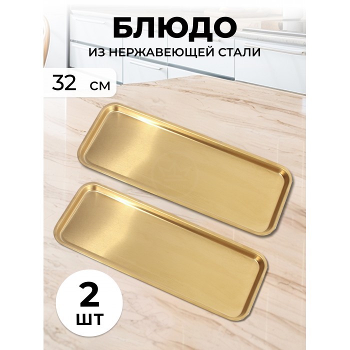 Набор блюд из нержевеющей стали прямоугольные 2 шт (32*12, 5см-2шт) золото 266205