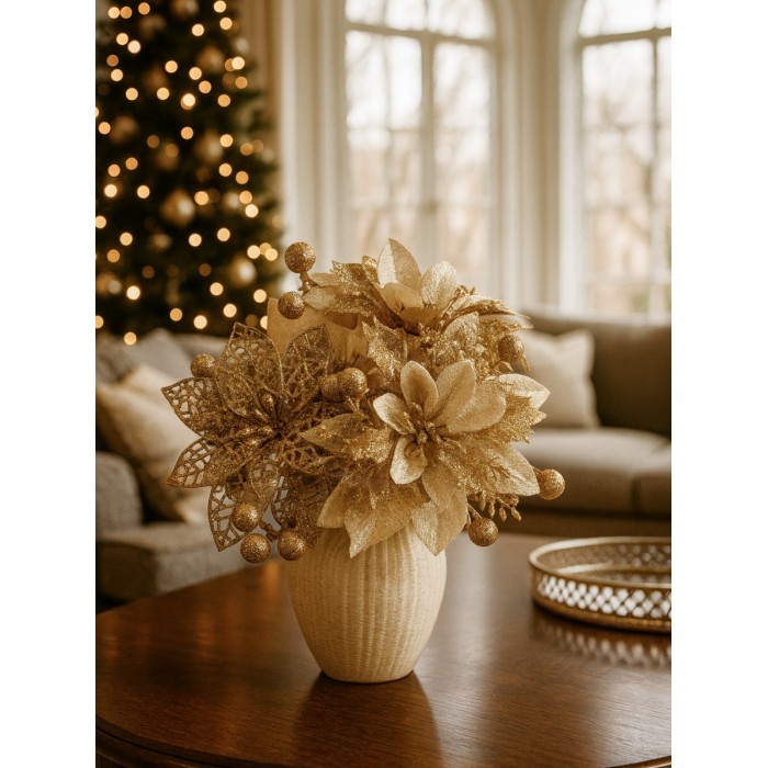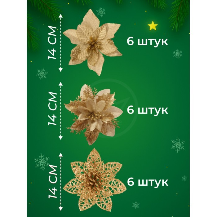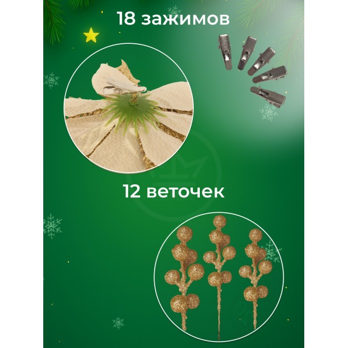 Набор Цветы Пуансеттия (18 штук - 14 см + веточки+зажимы) золото 266220
