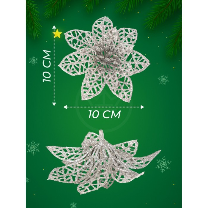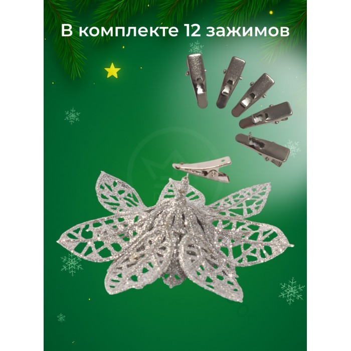 Набор Цветы Пуансеттия (12 штук - 10 см+зажимы 12шт) серебро 266223