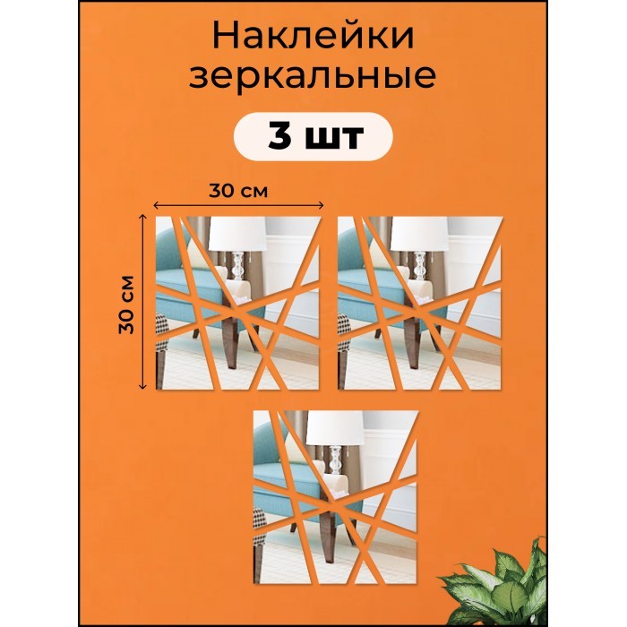 Интерьерные зеркальные наклейки Квадрат 3 шт-1 набор ( 30*30 см ) 262184