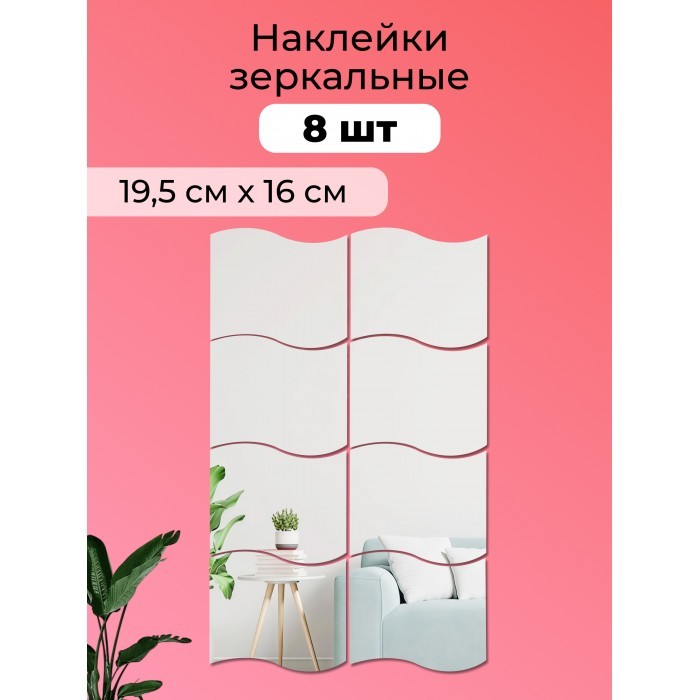 Интерьерные зеркальные наклейки Волна 8 шт (16*19 см) 265983