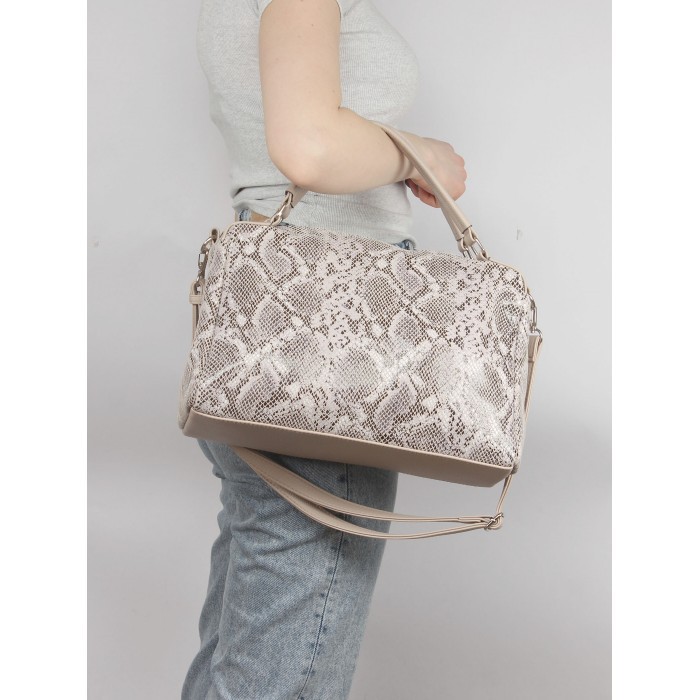 Сумка женская натуральная кожа ADEL-152/3в (отделка ИСК/КОЖА), 1отд, плеч/ремень, серобежевый питон SALE 264340