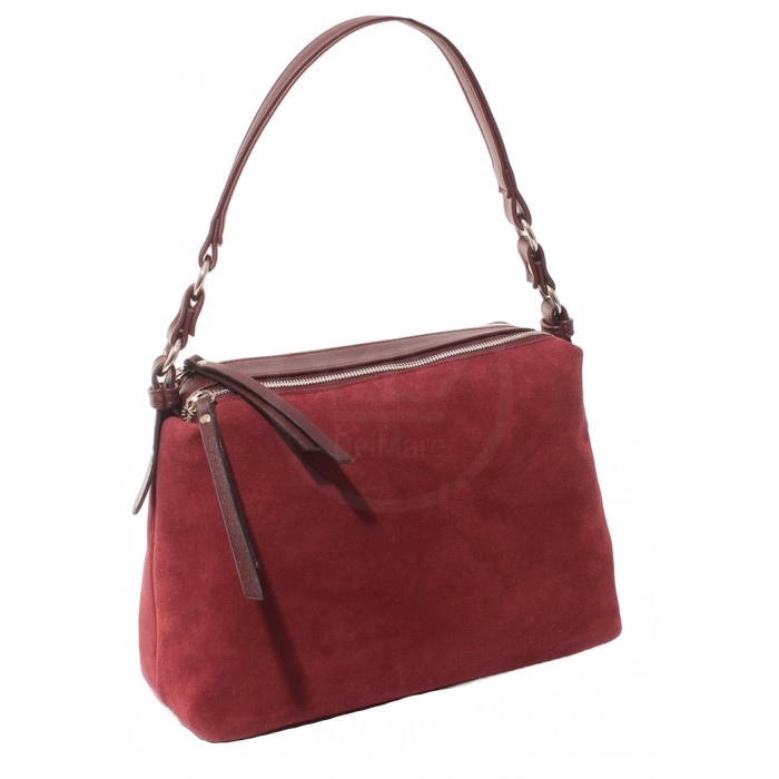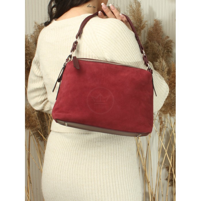 Сумка женская натуральная замша ADEL-304-405/3в (отделка ИСК/КОЖА), 2 отд/плеч рем, бордо 266026