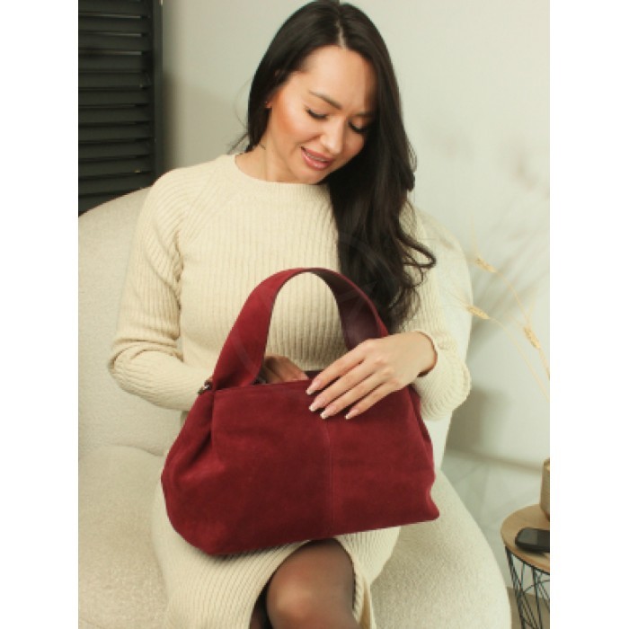 Сумка женская натуральная замша ADEL-281-405 (отделка ИСК/КОЖА), 1отд, плечевой ремень, бордо 266027